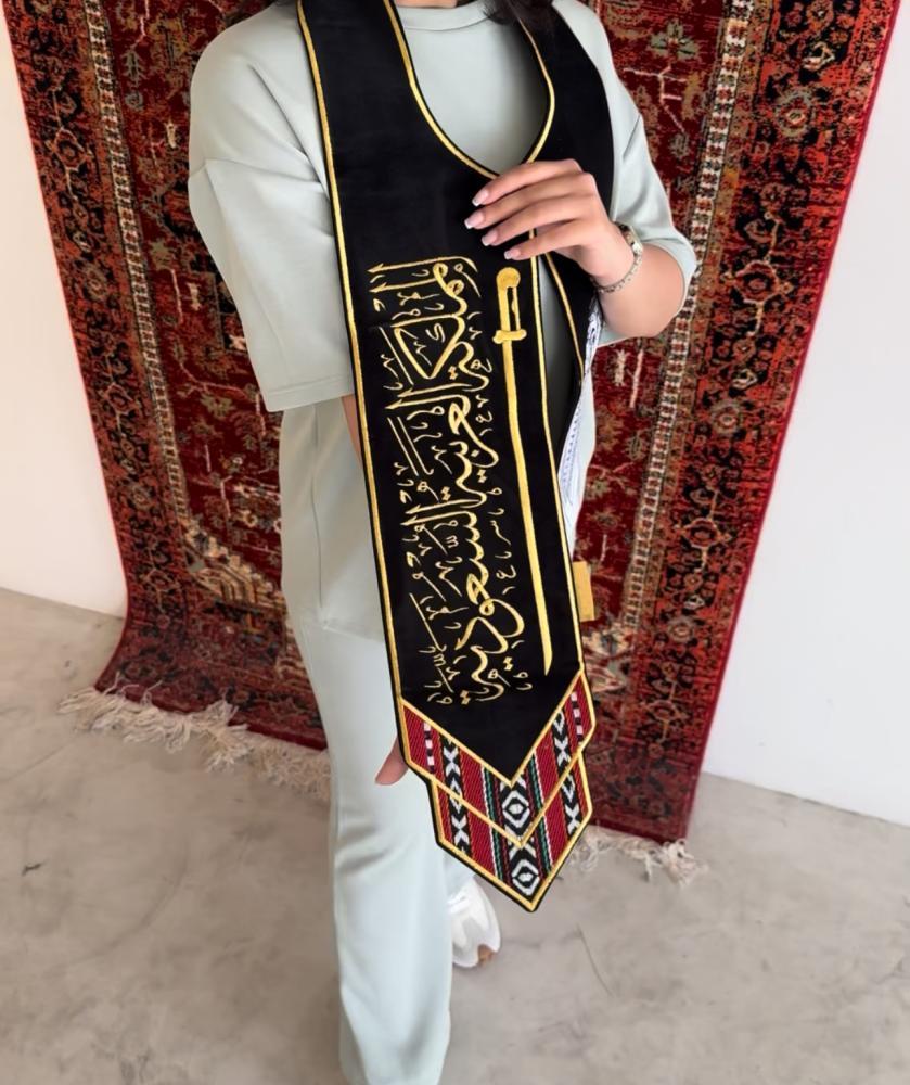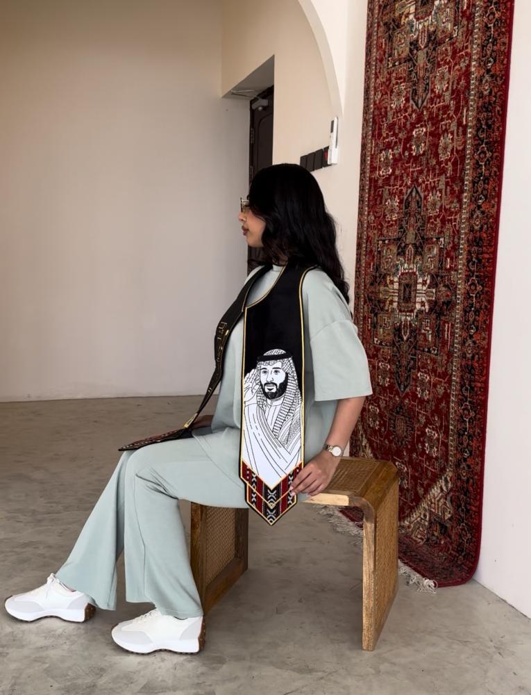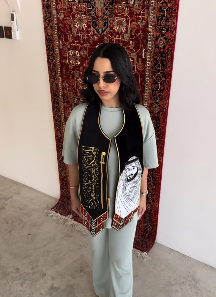 وشاح مخملي مطرز بشعار المملكة وصورة ولي العهد، بتصميم تراثي أنيقيتوفر بلونين: أسود – أخضرمناسب للرجال والنساء