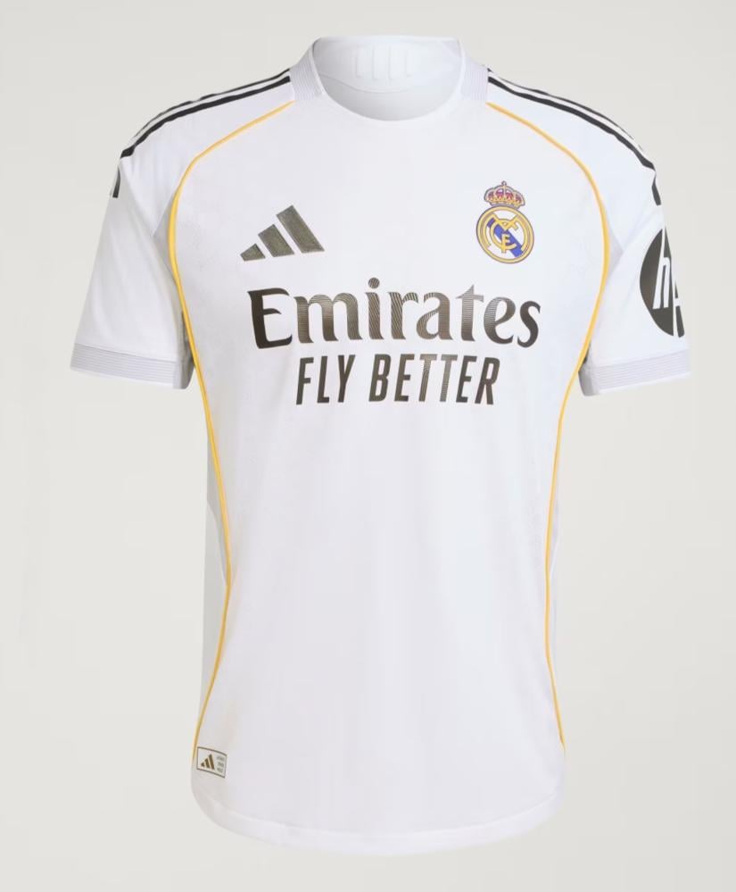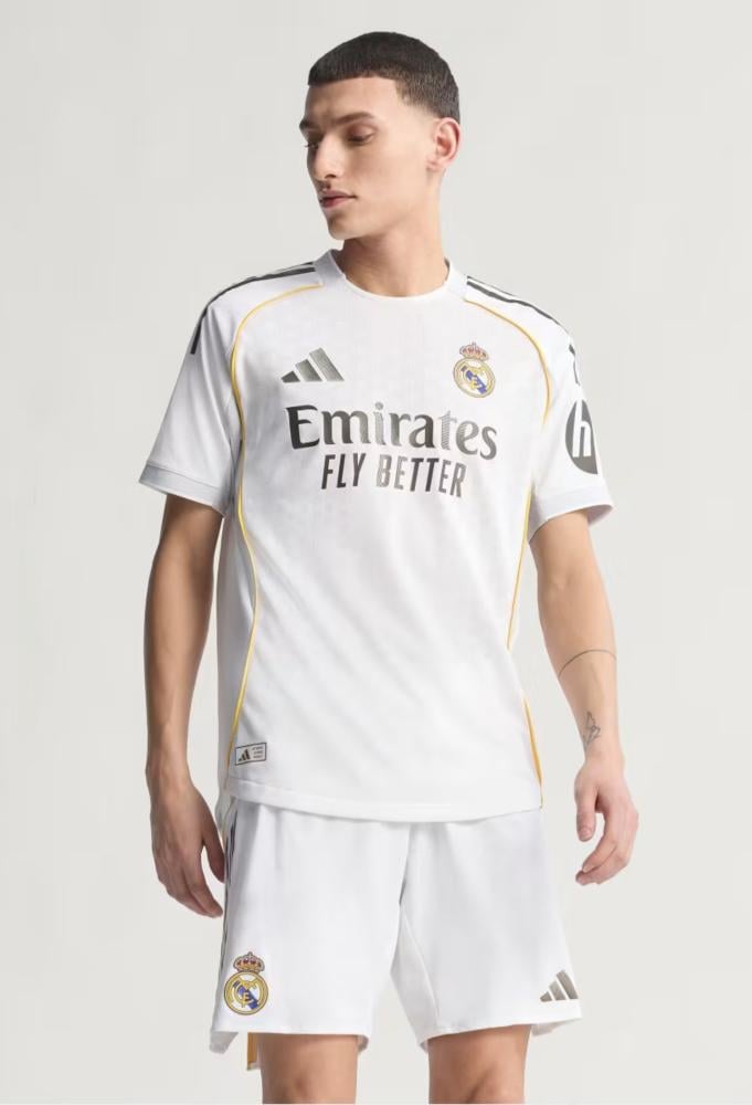 Built on solid foundations, this Real Madrid home jersey from Roshn reflects Real Madrid's rich history with a design featuring subtle shapes, touches, and colors inspired by the club's long and illustrious history. Designed to be worn at the legendary stadium in the 2025-26 season, it features a performance-focused construction for fast-paced football and a heat-printed club crest for unparalleled inspiration.
